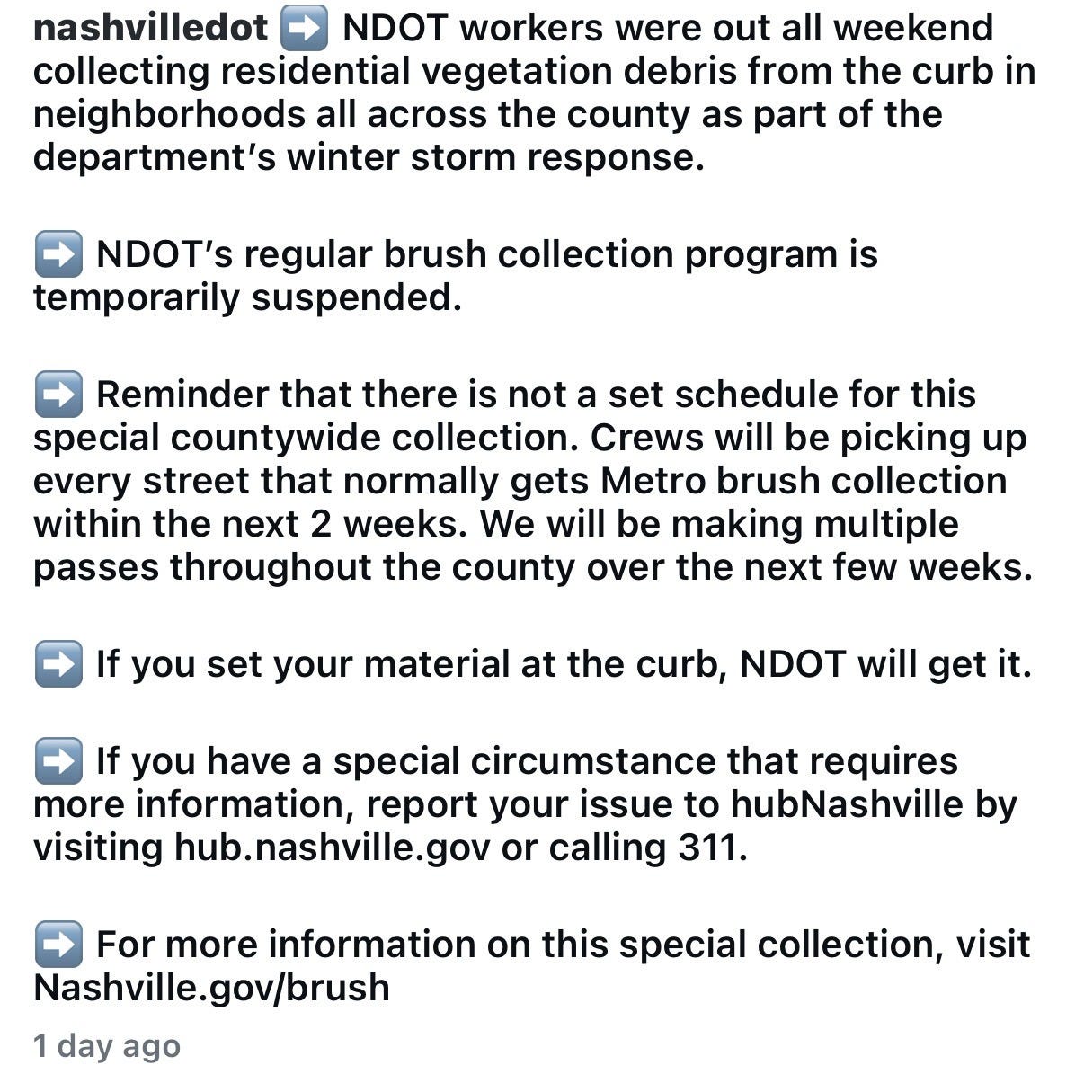 We lost a lot of limbs during the ice storm. Now, many of those limbs line the side of our streets. NDOT has not forgotten them. The agency issued an update yesterday on social media reassuring residents that all debris would be picked up. Here’s what they said: